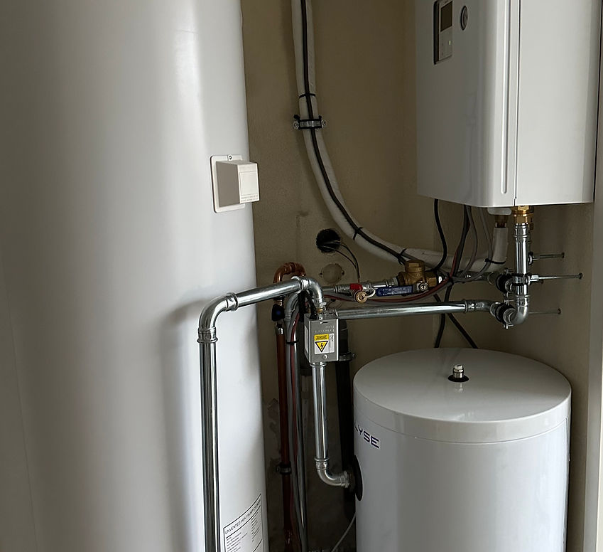 Als erkent installateur installeren wij een lucht/water warmtepompsysteem dat veelal bestaat uit drie delen. Een buitendeel, een hydromodule en een warmwatervat dat warm water opslaat en warm houdt.